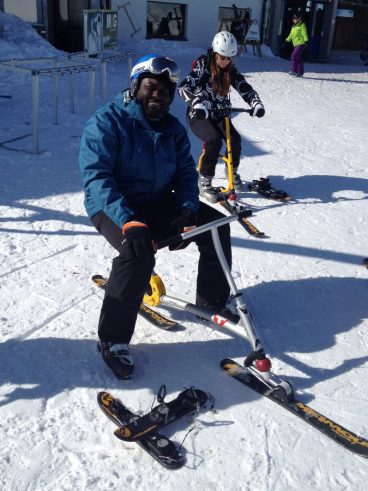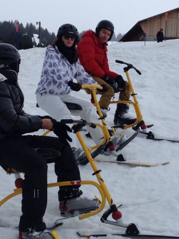 Kurse, Testtage Gstaad-Saanen + Zweisimmen, Events: Jedes Jahr neue Sportler, die Spass am Snowbiken finden. Von weit her: aus Wales/U.K., Hong Kong und Thurgau.