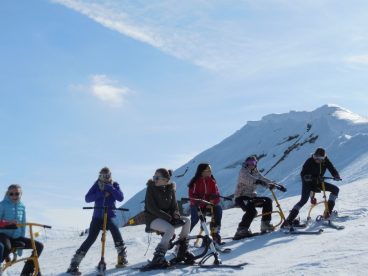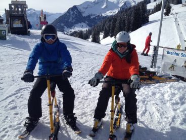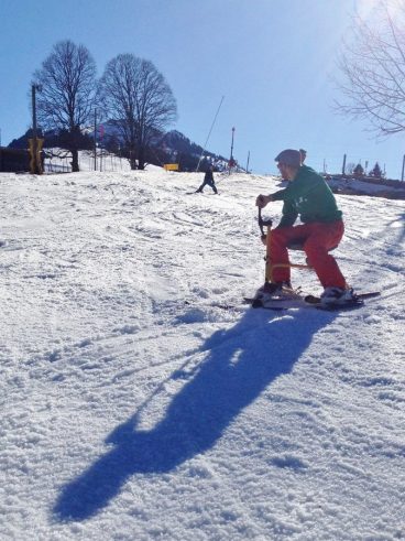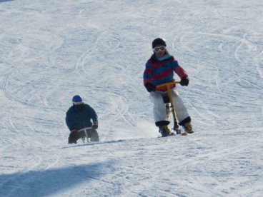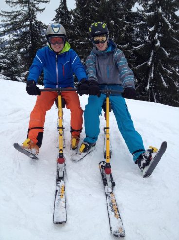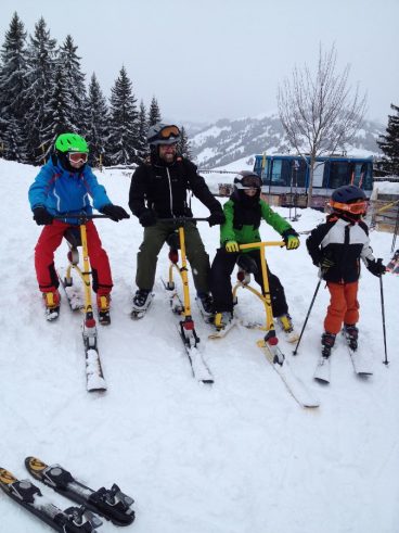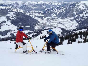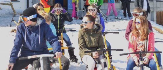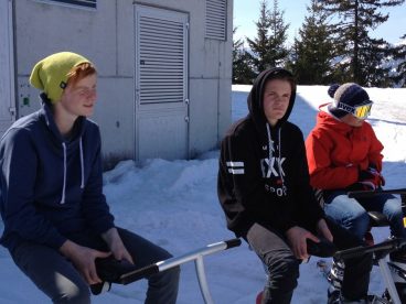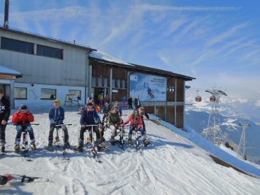 Und eine Schulklasse aus Saanen. Es macht Spass, wie die Anfänger schnell lernen – komm mach mit! Fotos vom 1. Tag auf dem Snowbike.