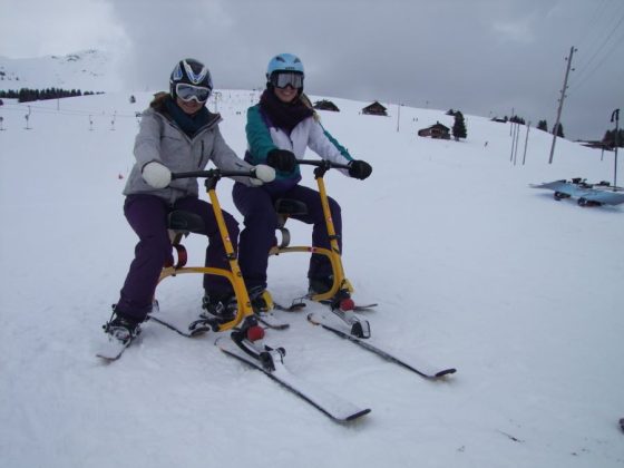 Brenter Snowbike Partner haben sich verpflichtet, jeden Neuling einen Kurs absolvieren zu lassen. Dies hilft, das neue (auch wenn’s seit 1952 gefahren wird!) Sportgerät zu beherrschen.
